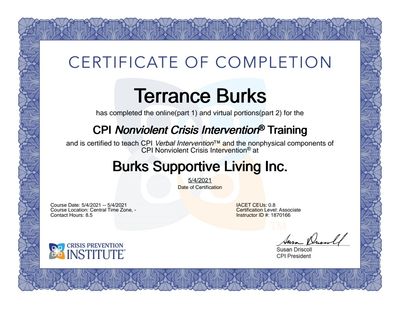 2. Certified CPI Nonviolent Crisis Intervention Training.